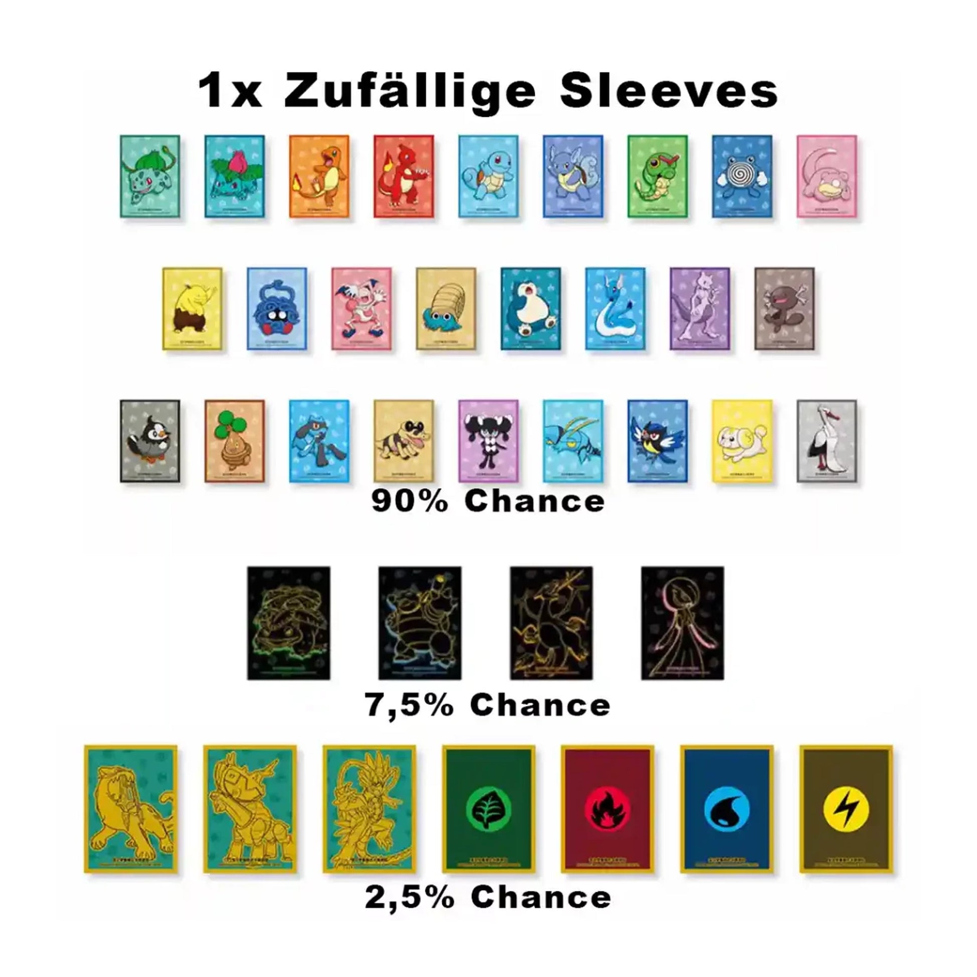 Im Inneren findest du ein Slim Boosterpack mit 5 Karten aus der beliebten 151 Collect: Hope-Serie, ein Promo-Booster mit 2 exklusiven Karten sowie zwei weitere Boosterpacks mit je 5 Karten aus den aktuellen Scarlet & Violet-Sets. Zusätzlich enthält die Box ein Set aus 64 hochwertigen Sleeves, ideal zum Schutz deiner Lieblingskarten während des Spiels oder für die Vitrine.
